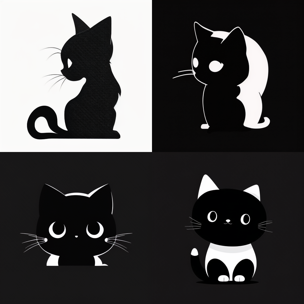 Ein Logo zu designen kann knifflig sein, da es individuell ist und sich von anderen abheben soll. Nuzt man Google für Inspiration, findet man eine Menge Standardicons, die bereits vielfach verwendet werden. Was kann für die Ideenfindung besser sein als ein Tool, das aus Schlagwörtern Icons generieren kann? Aus ,,icon, cute cat, disney style, simple, black and white, flat 2d“ können diese Bilder entstehen: