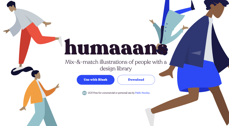 Wer auf der Suche nach guten Illustrationen von Menschen in unterschiedlichen Positionen ist, der wird hier fündig. Mit Humaans kannst du dir eine Personen selber zusammenbauen, indem du mehrere Köpfe, Oberkörper und Beine zur Verfügung hast, die du beliebig anordnen kannst.